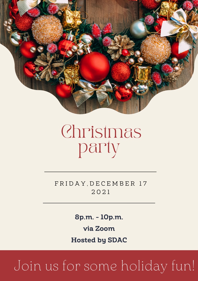 This year has been quite challenging, but SDACers, we made it! Let’s have a break from the busy days and celebrate the upcoming Christmas together! Representatives of the 3rd, 4th, and 5th cohort would like to invite all of you to an online Christmas party on December 17th at 8 pm.