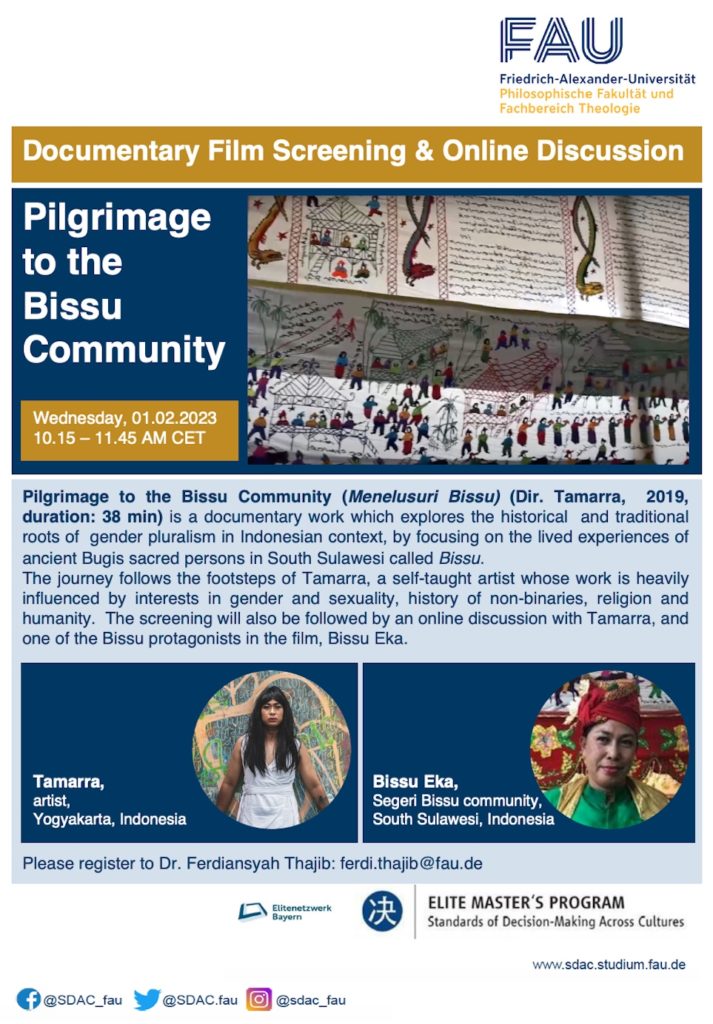Our senior lecturer Dr. Ferdiansyah Thajib will organize a documentary film screening and talk event for his “Decentering Gender and Sexuality in Asia” course. The film is about the historical and traditional roots of gender pluralism in the Indonesian context, focusing on the lived experiences of ancient Bugis sacred persons in South Sulawesi called Bissu. It will take place on February 1st, Wednesday from 10:15-11:45 (CET). External participants are also welcome.